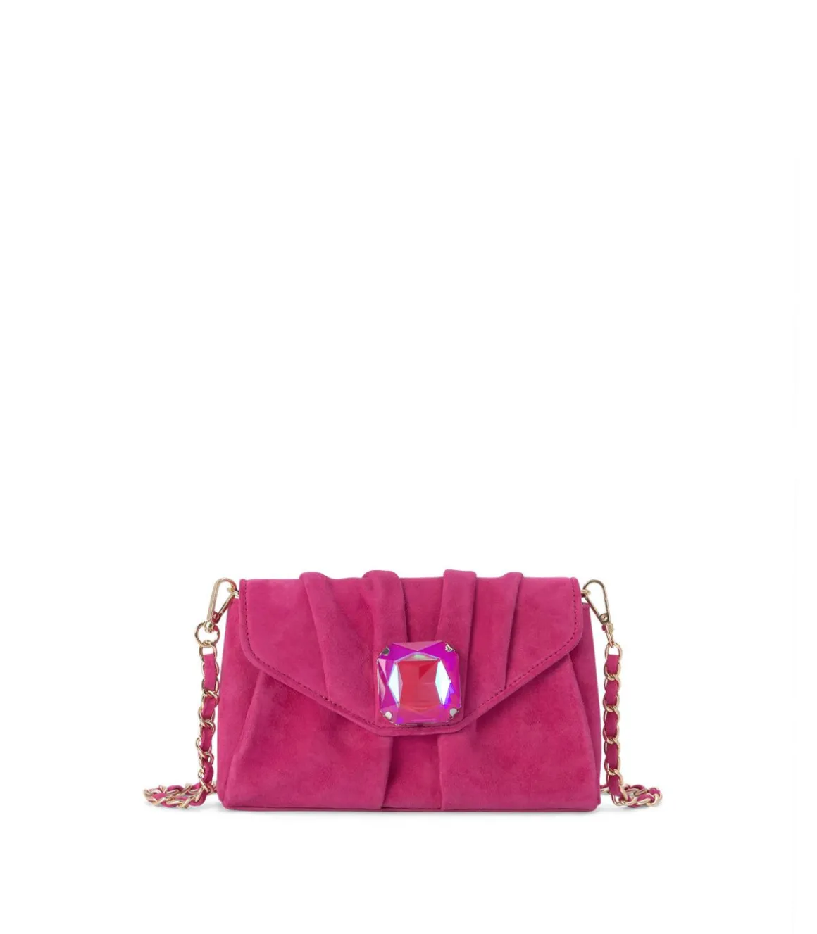 Bolso formato bandolera con adorno diamante cuadrado. Realizado en piel con interior forro textil. Asa de cadena función bandolera. Cierre mediante imán.