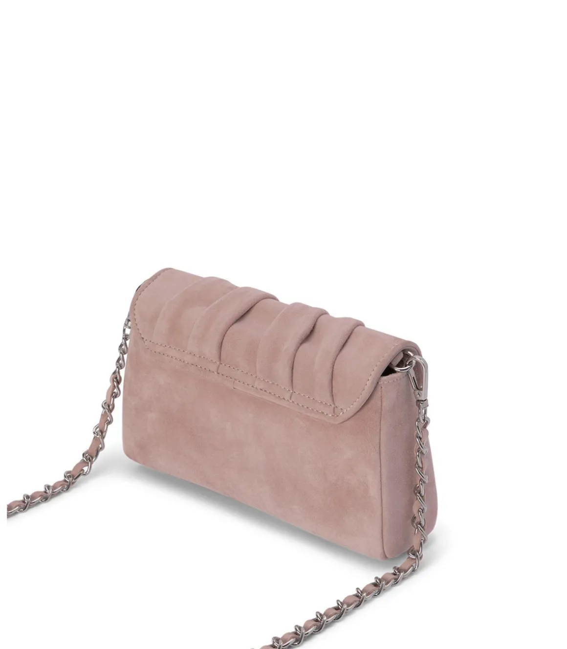 Bolso formato bandolera con adorno diamante cuadrado. Realizado en piel con interior forro textil. Asa de cadena función bandolera. Cierre mediante imán.