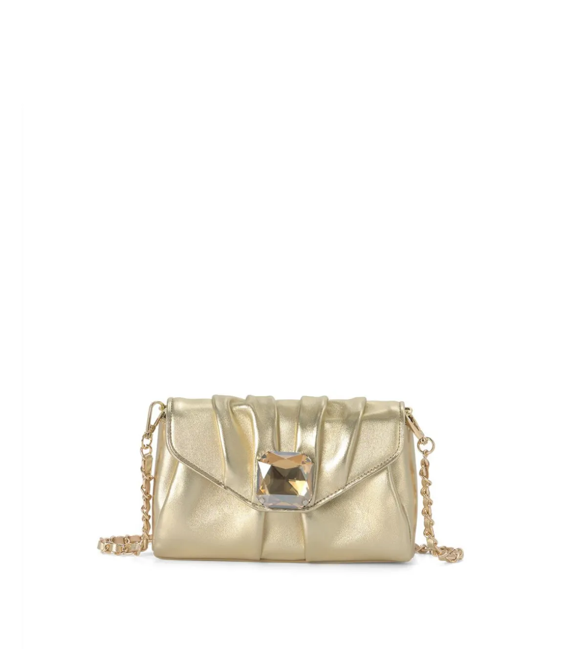Bolso formato bandolera con adorno diamante cuadrado. Realizado en piel con interior forro textil. Asa de cadena función bandolera. Cierre mediante imán.