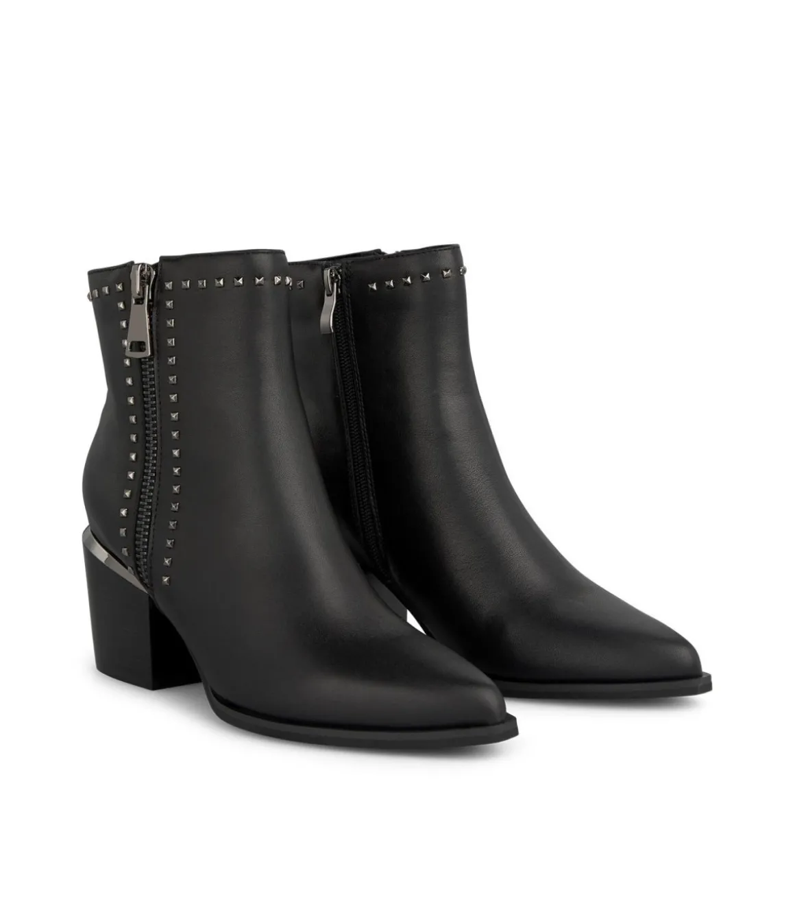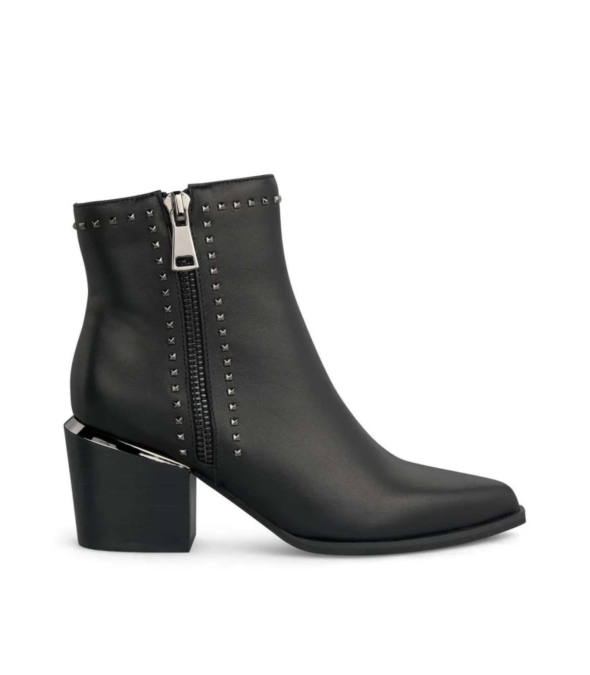 Botín de tacón de mujer con tachas y cremallera lateral. Puntera redondeada cierre con cremallera. La altura del tacó…