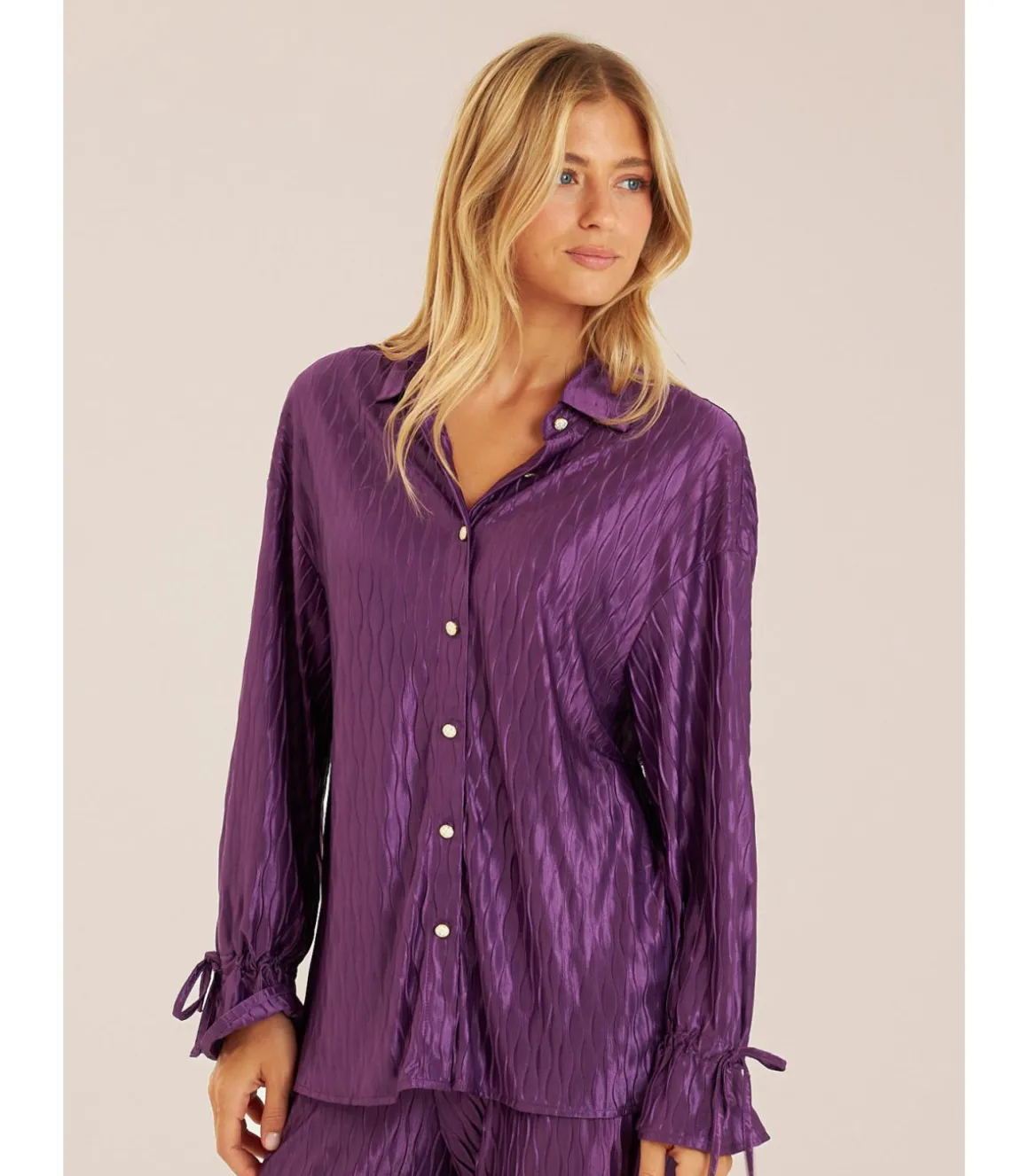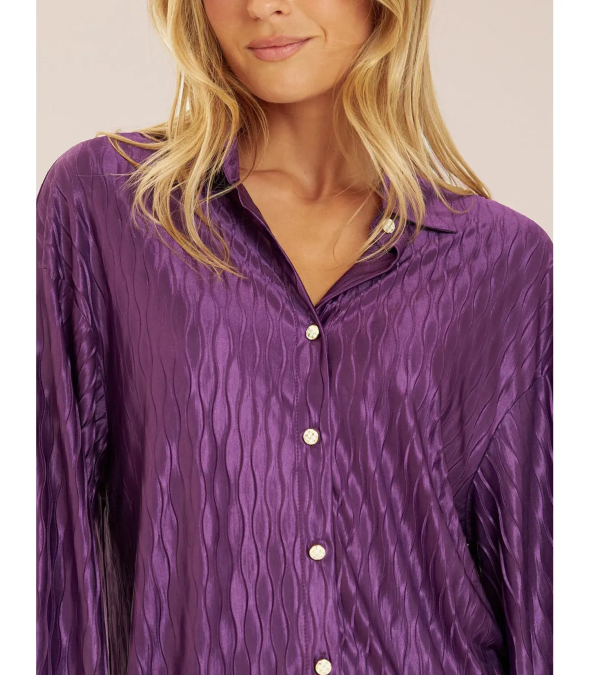 Camisa fluida abotonada. Con detalles de pedrería. Cuello de solapa con escote en pico y manga larga. Cierre frontal con botones. Medidas de la modelo: altura 1,69cm, pecho 82cm, cintura 60cm y cadera 88cm.