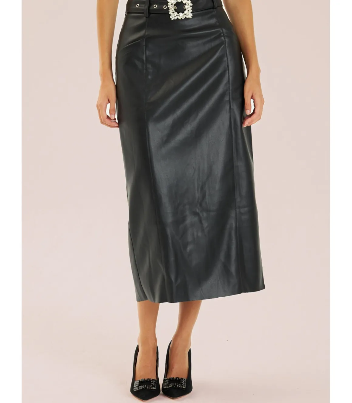 Alma en Pena Faldas|FALDA MIDI EFECTO PIEL
