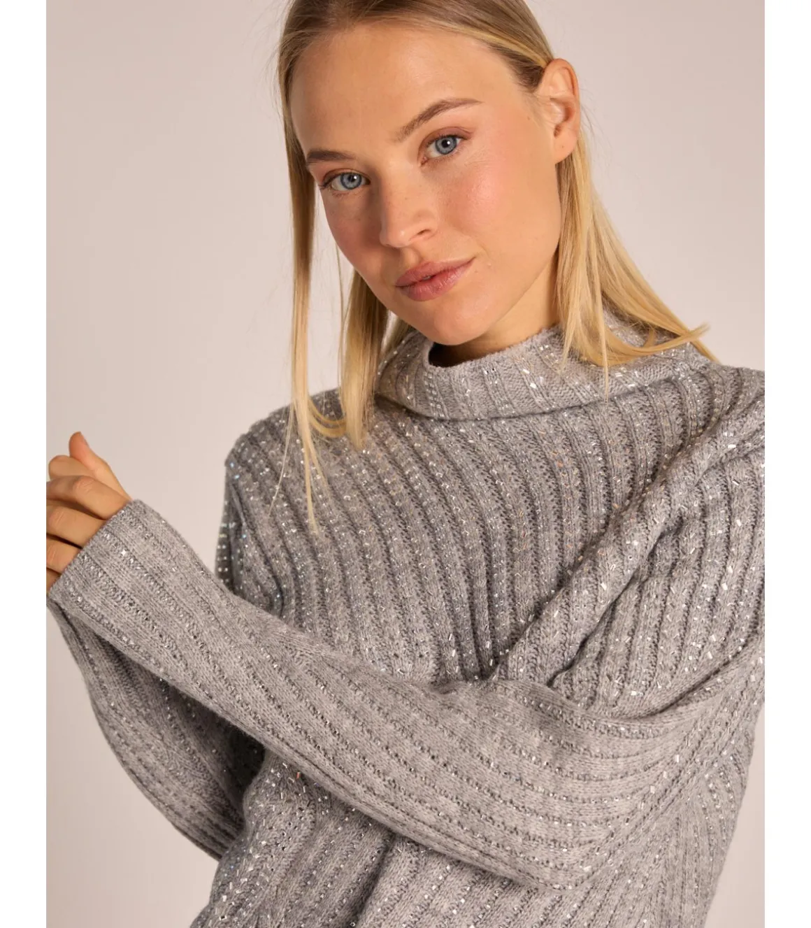 Jersey de punto de mujer con detalles de pedrería. Con manga larga y sin cierre. Las medidas de la modelo vistiendo la talla S son: altura 1,68cm, pecho 87cm, cintura 63cm y cadera 88cm.