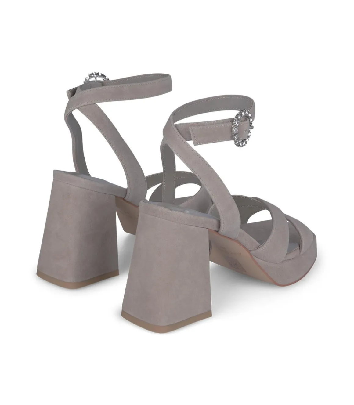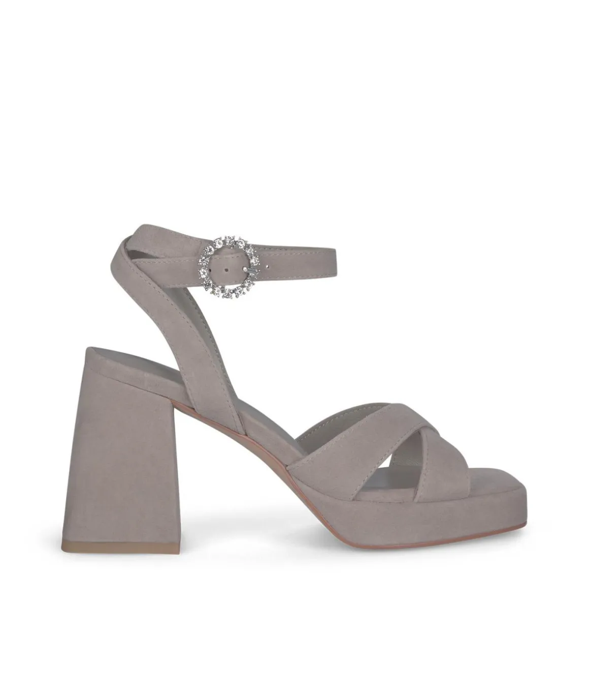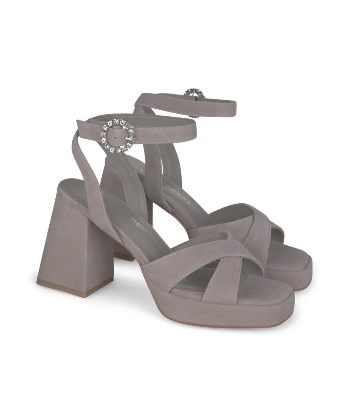 Sandalia de tacón de mujer con tiras cruzadas. Tacón bloque cuadrado y cierre con hebilla altura del tacón es de 9cm.