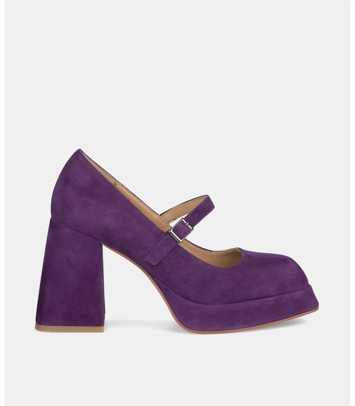 Sandalia con tacón bloque. Cierre con hebilla. Puntera cuadrada. La altura del tacón es de 9,5cm.