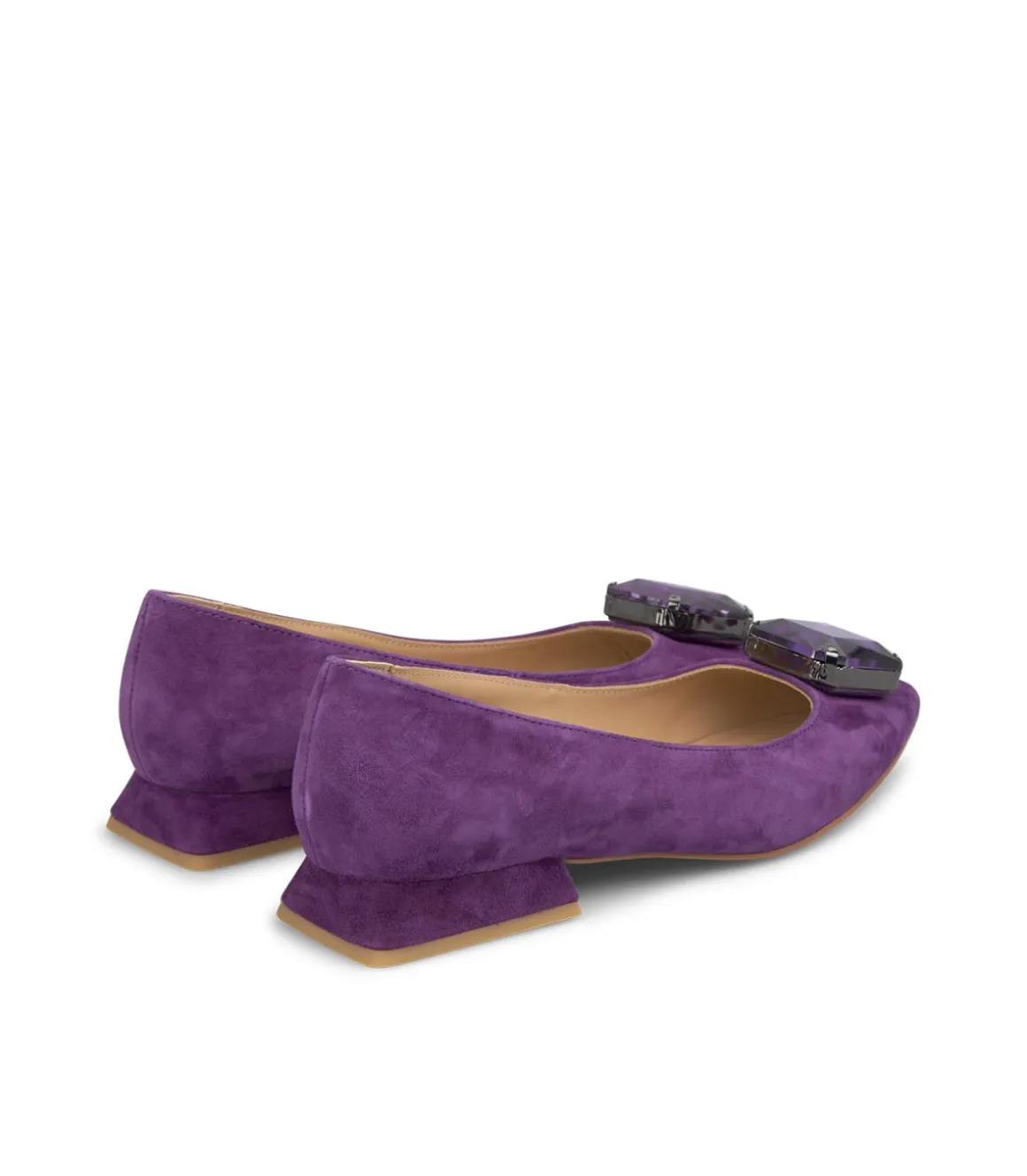 Bailarina plana de mujer con detalle de pedrería en la puntera afilada. Confeccionada en piel sin cierre y la altura del tacón es de 2,2cm.