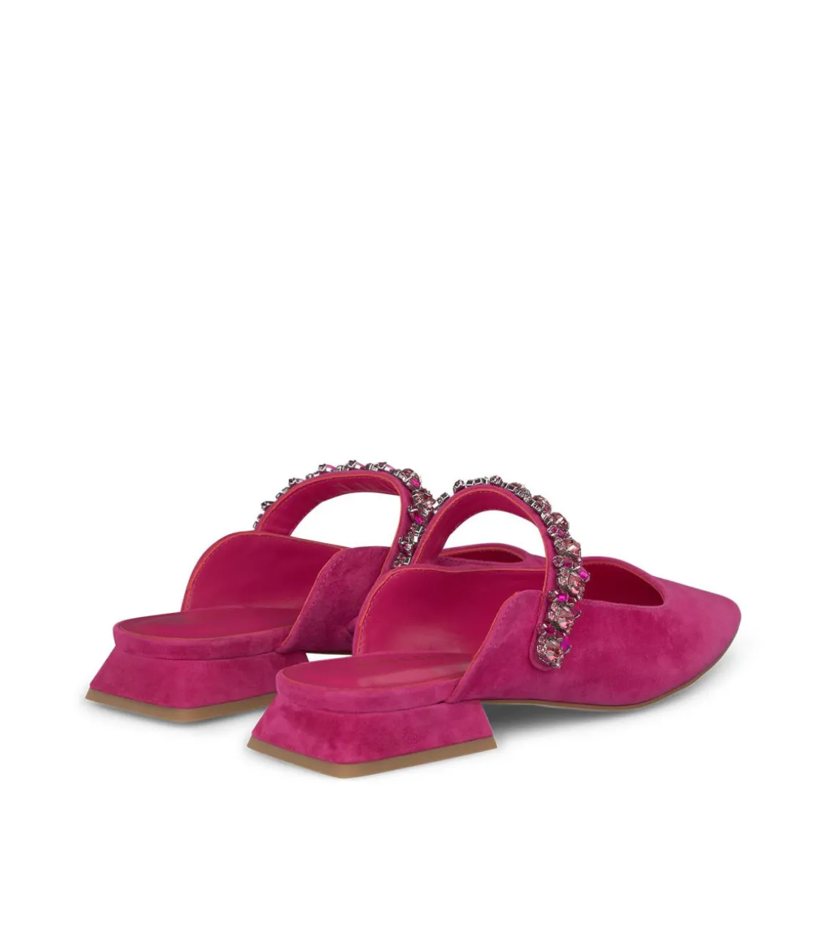 Zapato plano de mujer con puntera afilada realizado en piel con adorno de pedrería. Sin cierre.La altura del tacón es de 2cm.