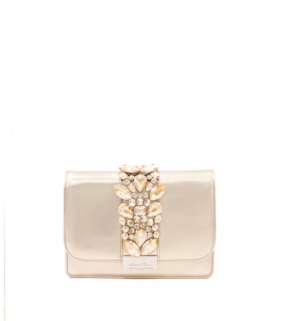 Bolso formato bandolera con cuerpo estilo caja. Detalle de joya en la solapa delantera,grabada con el logo. Interior con…