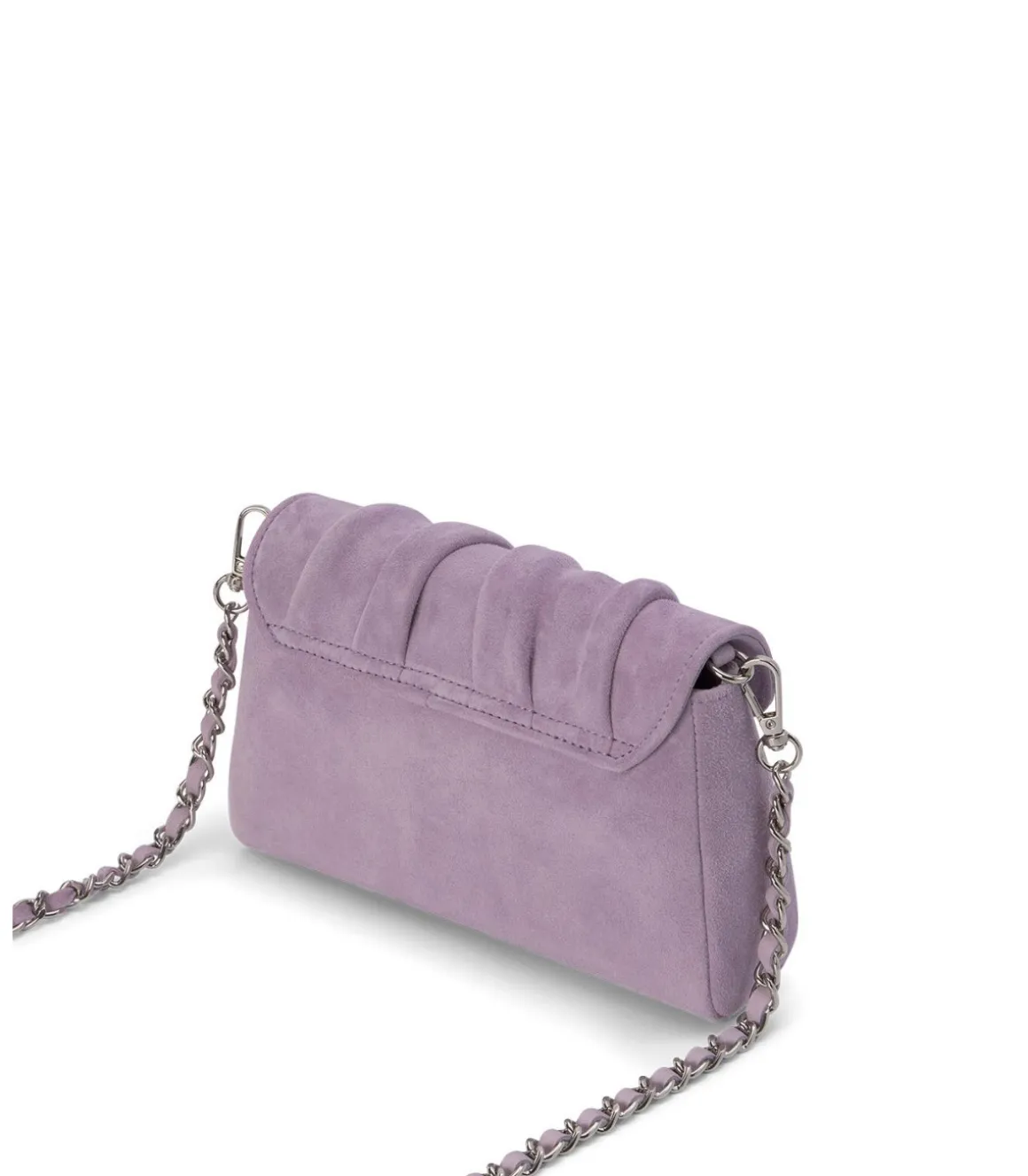 Bolso formato bandolera con adorno cuadrado. Realizado en piel con interior forro textil. Asa de cadena función bandolera. Cierre mediante imán.