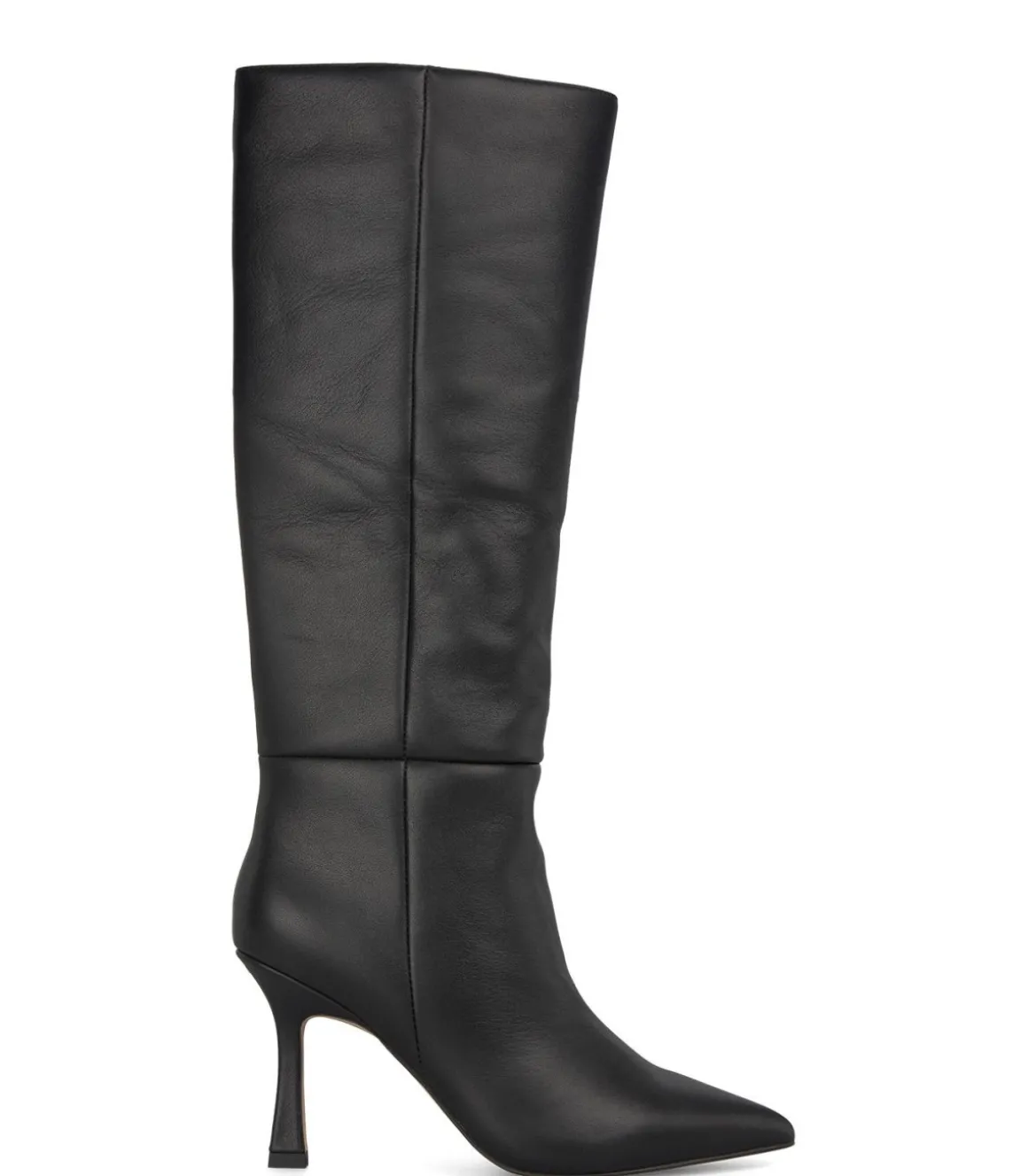 Bota de tacón de aguja para mujer realizada en piel. La puntera es afilada. Y la altura del tacón es de 9,5cm y la caña mide 38cm.