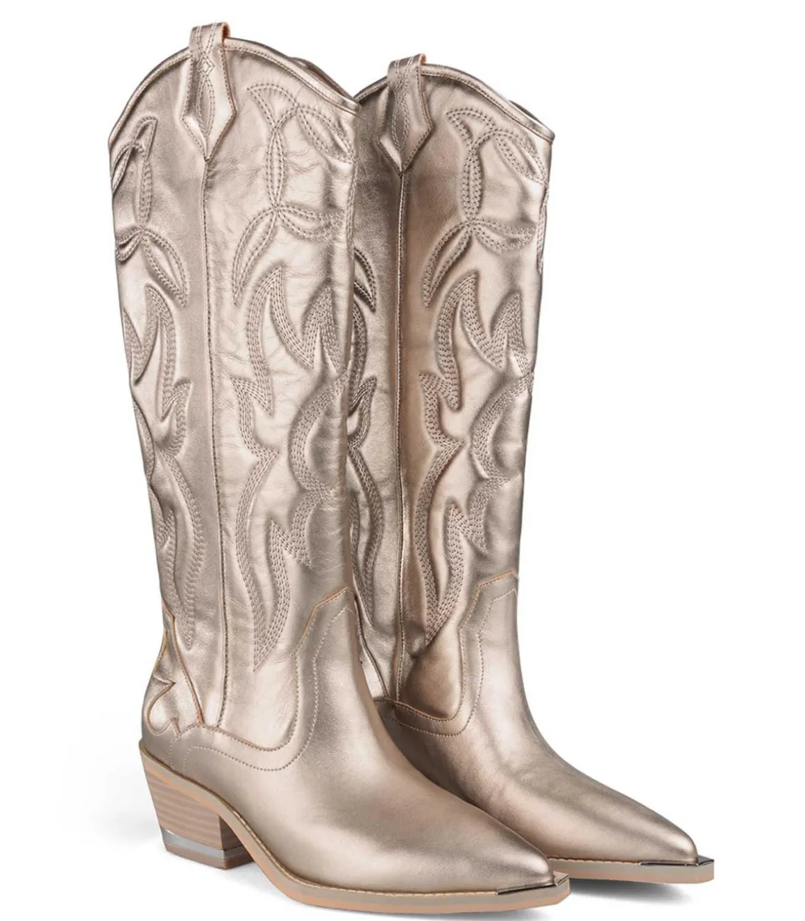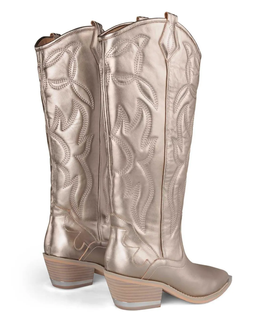 Bota de piel. El contorno de la abertura es de 32cm, la altura del tacón es de 6cm y la altura de la caña es de 30cm. Plantilla acolchada de piel.