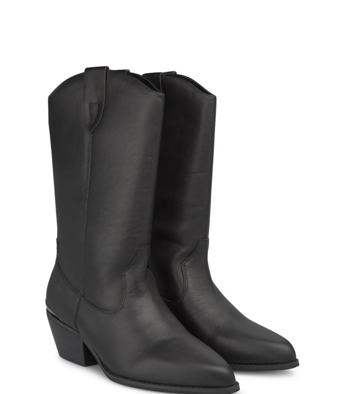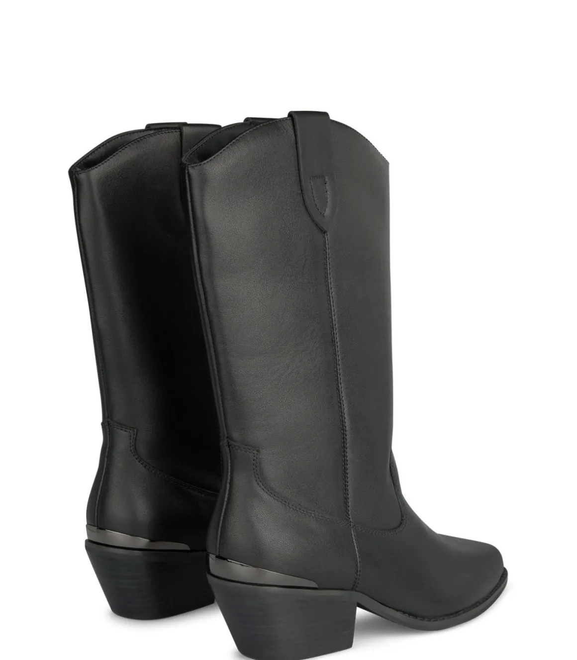 Media bota de mujer plana. Puntera redondeada, confeccionado en piel. La altura del tacón es de 5,2cm y la caña de la bota mide 27,5cm.