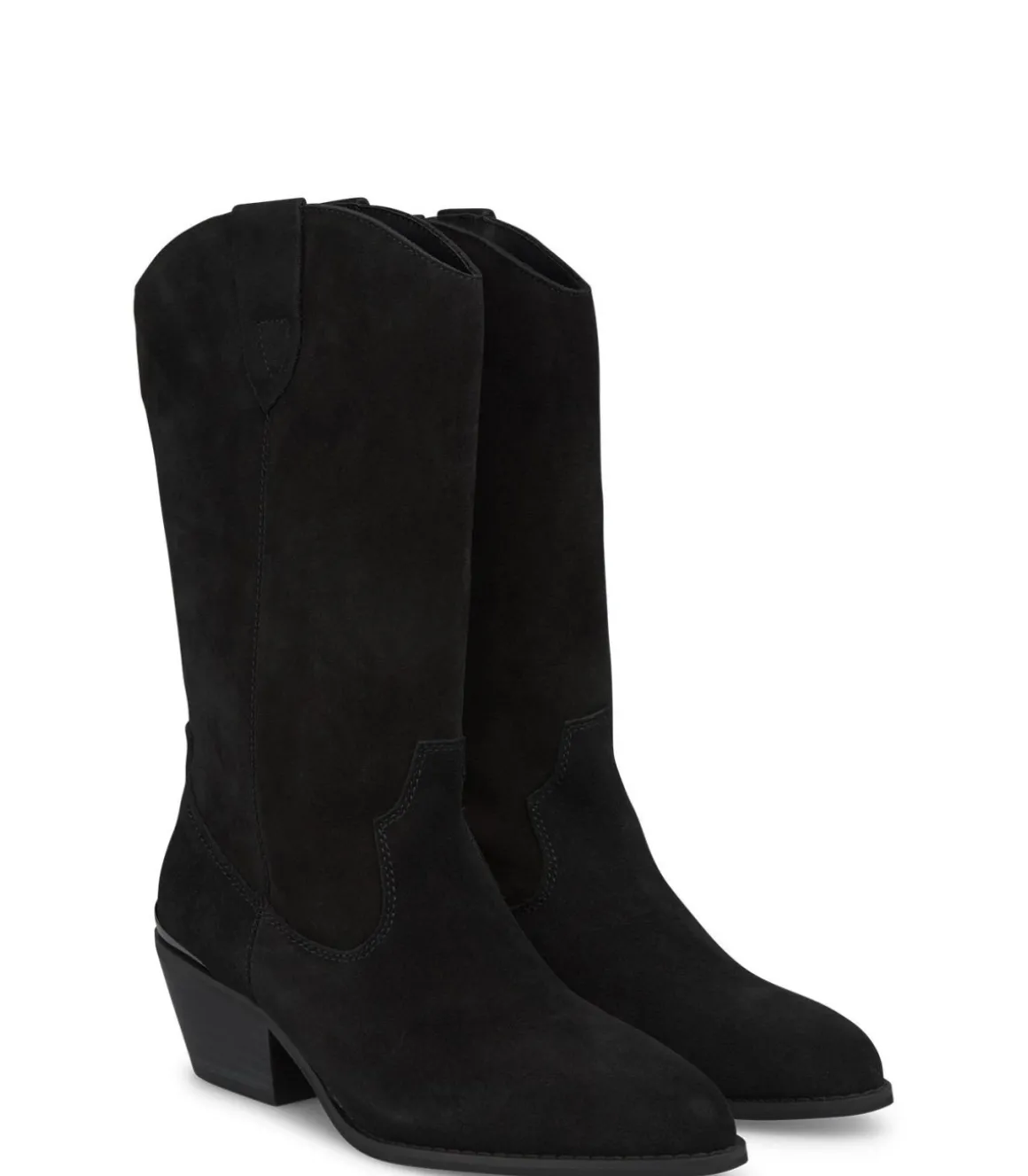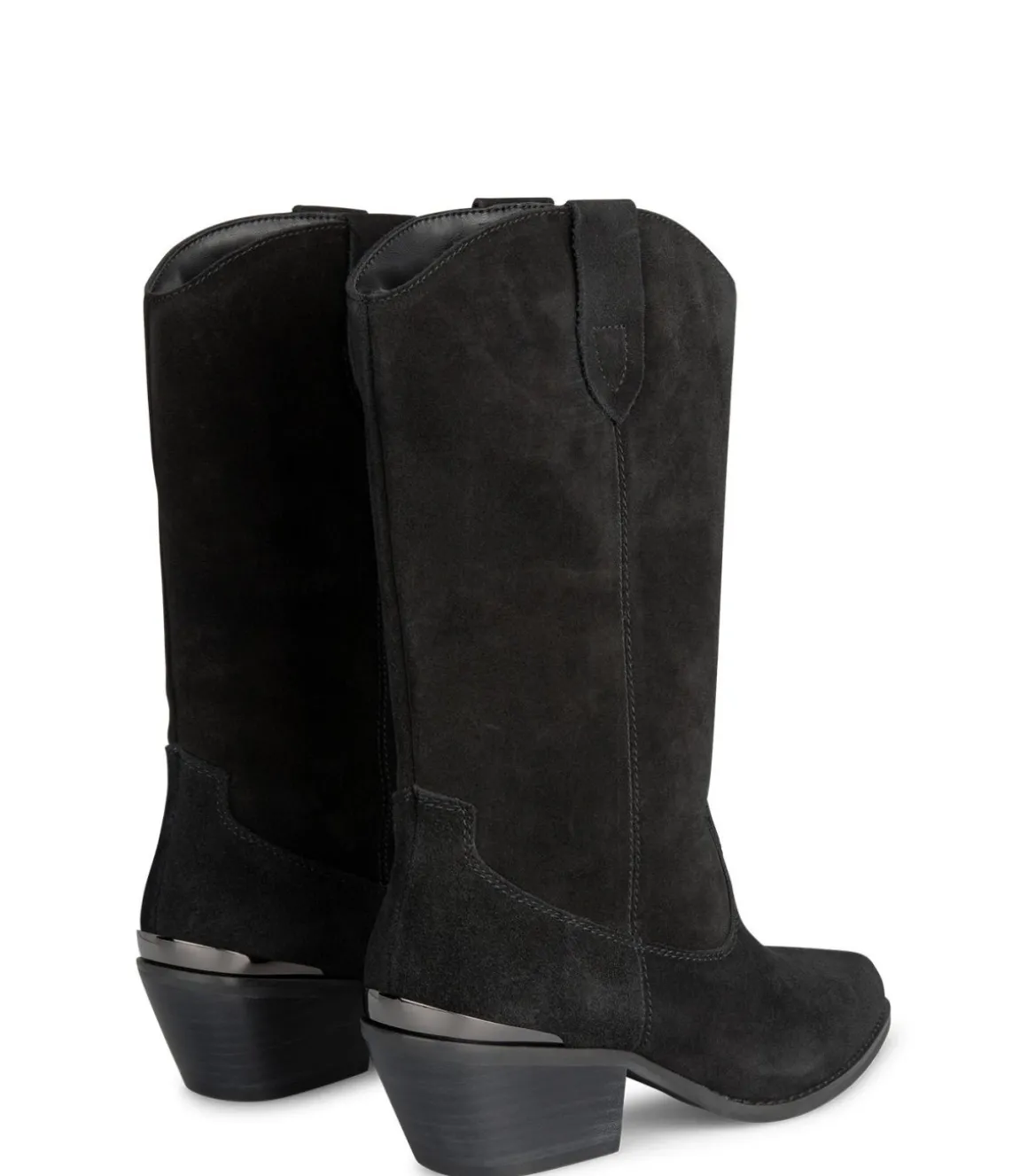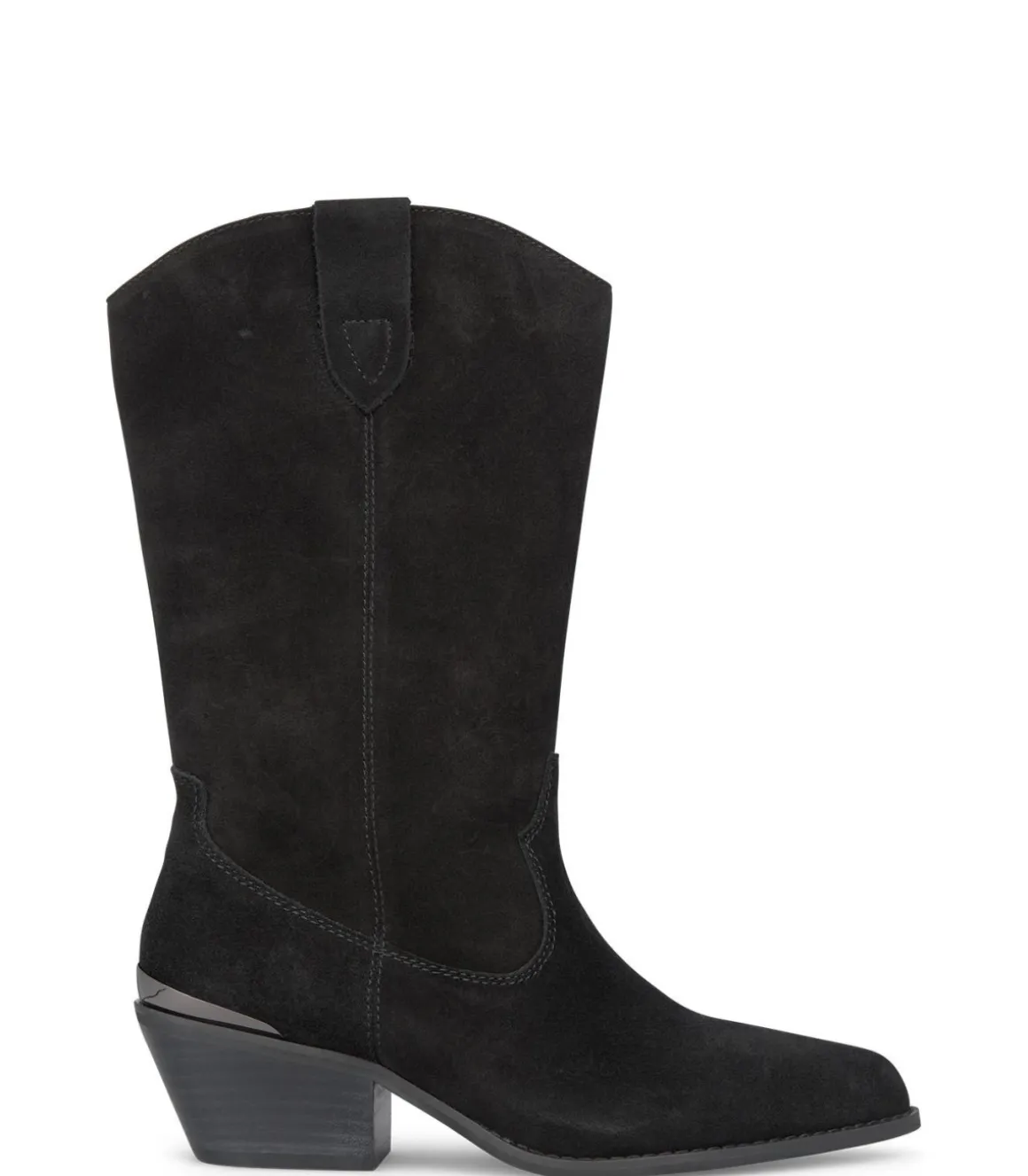 Media bota de mujer plana. Puntera redondeada, confeccionado en piel. La altura del tacón es de 5,2cm y la caña de la bota mide 27,5cm.