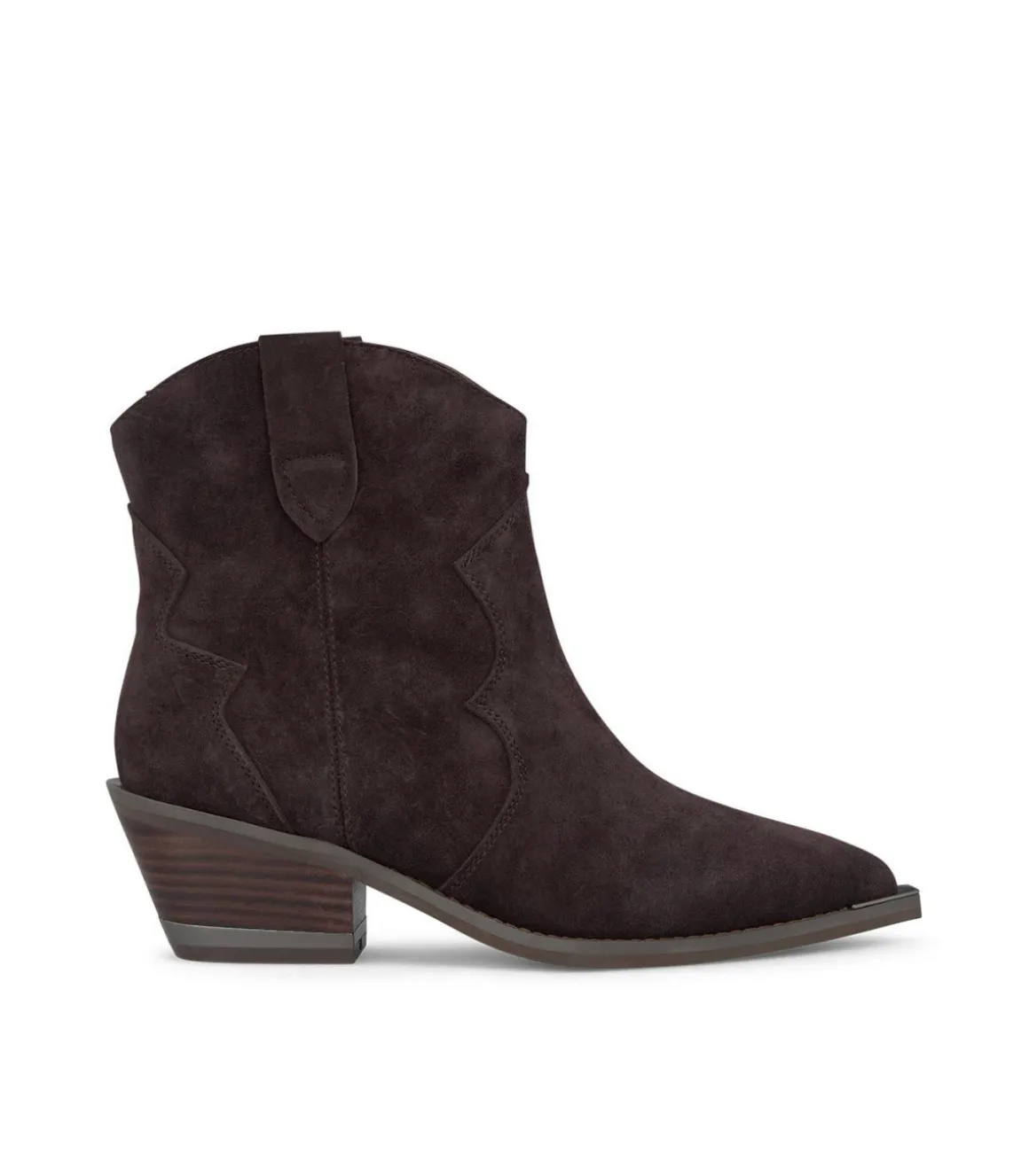 Botín cowboy de tacón de mujer. Puntera afilada, confeccionado en piel. La altura del tacón es de 5,8cm y la caña del botín mide 17cm.