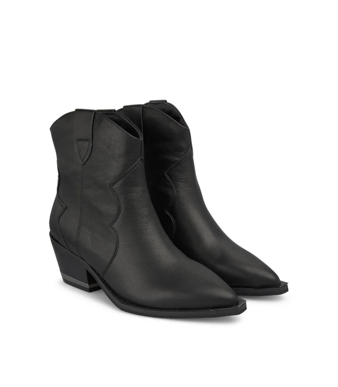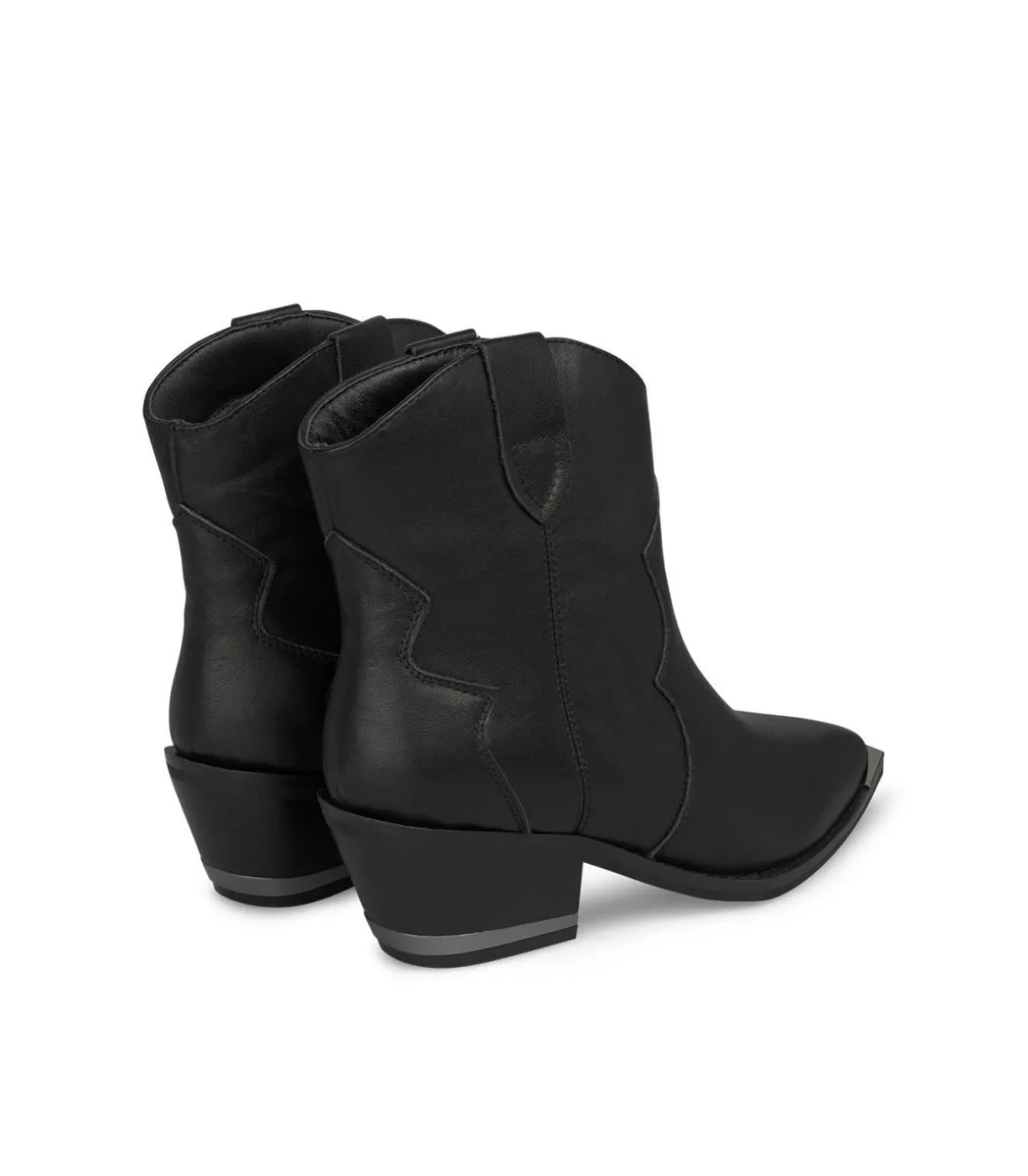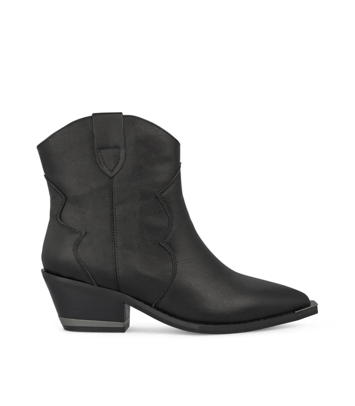 Botín cowboy de tacón de mujer. Puntera afilada, confeccionado en piel. La altura del tacón es de 5,8cm y la caña del botín mide 17cm.