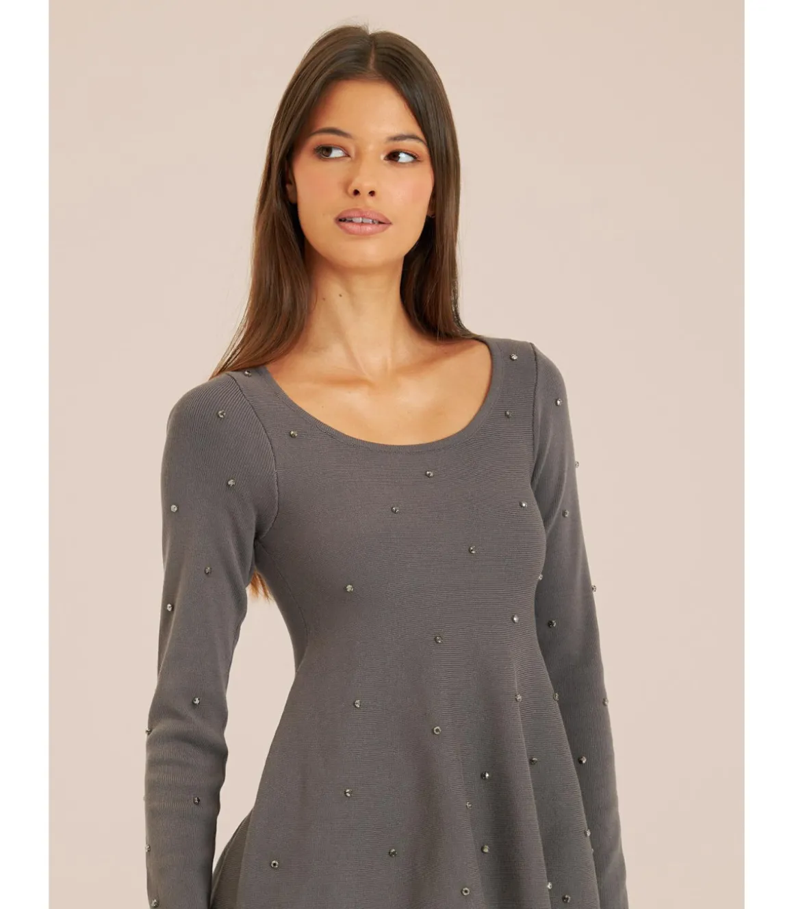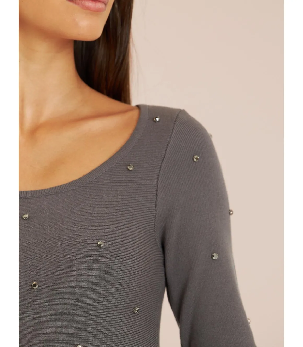 Top de punto de mujer de manga larga con detalle de pedrería. Sin cierre. Medidas de la modelo: altura 1,69cm, pecho 82…