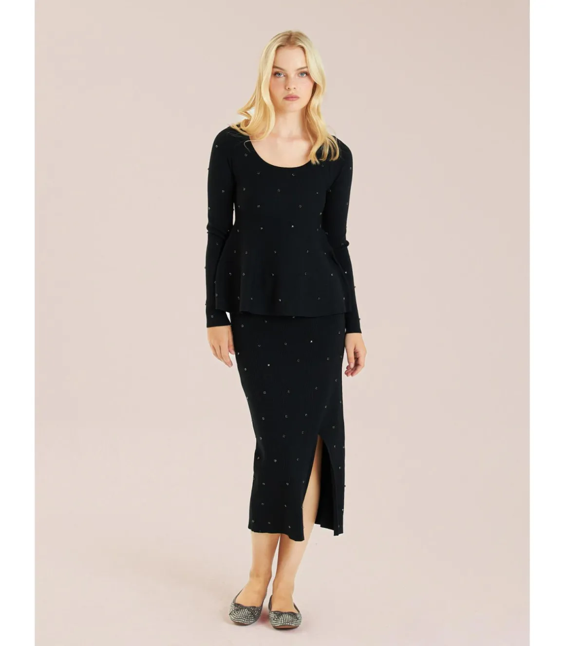 Alma en Pena Faldas|FALDA MIDI PUNTO PEDRERÍA