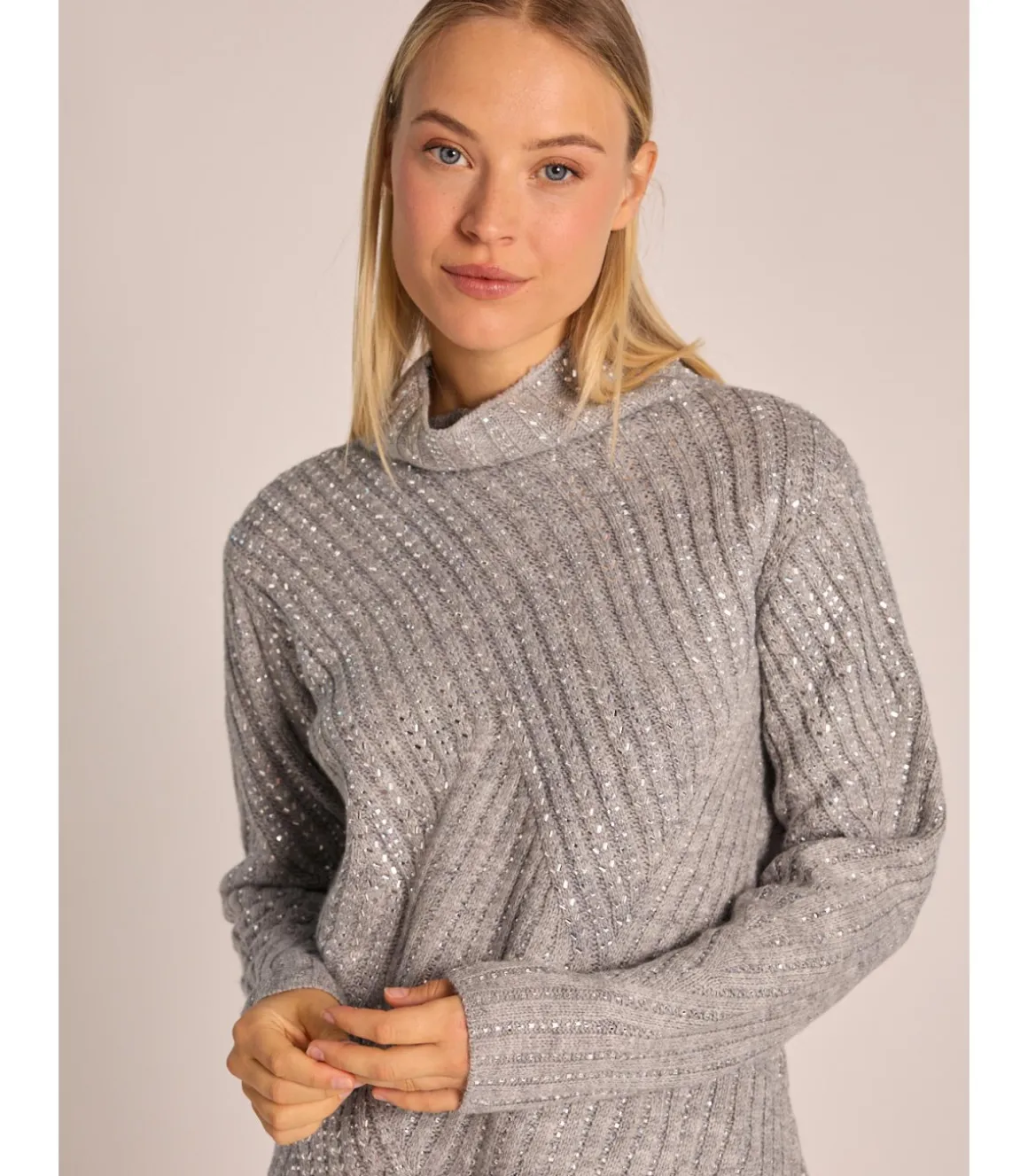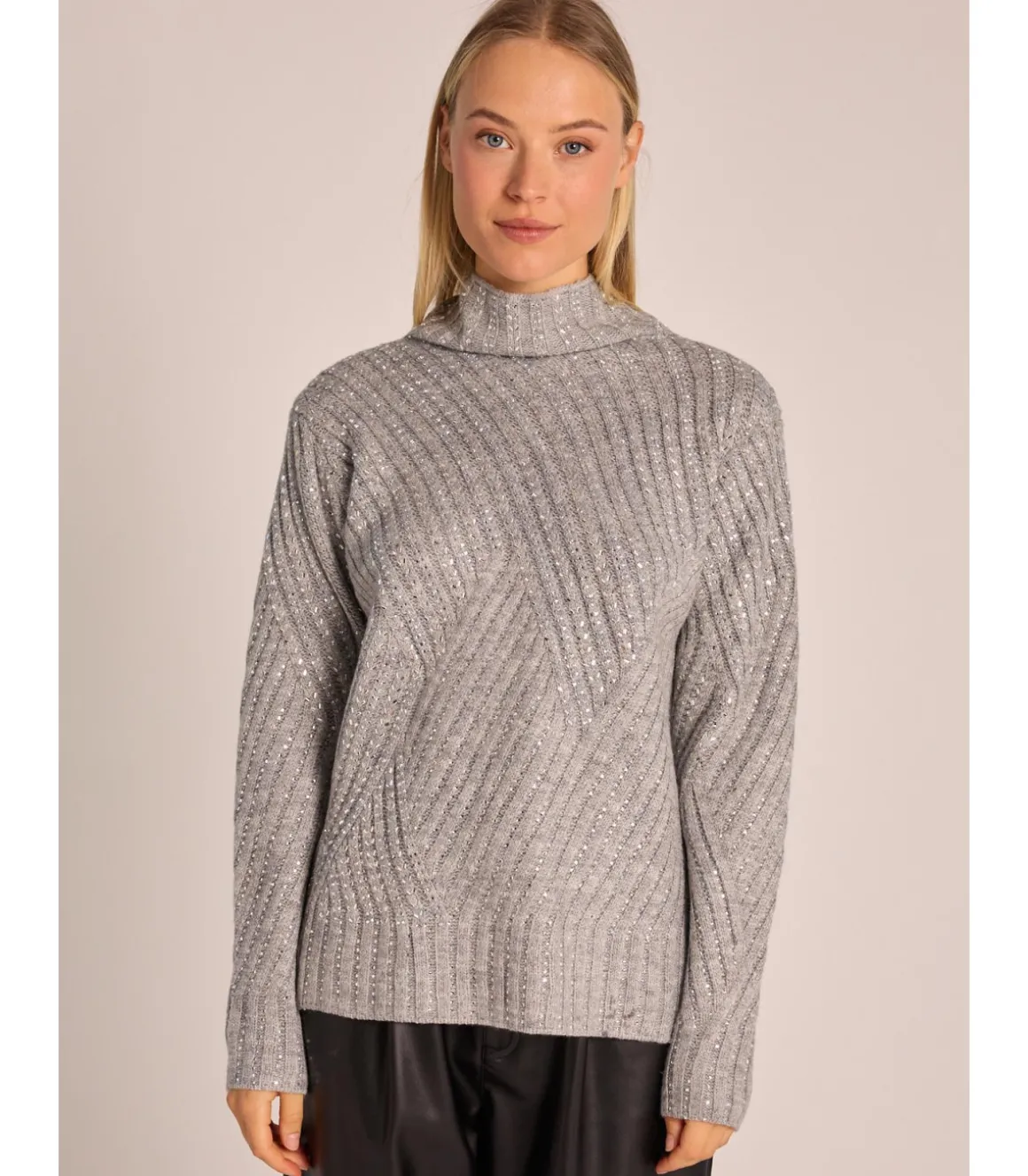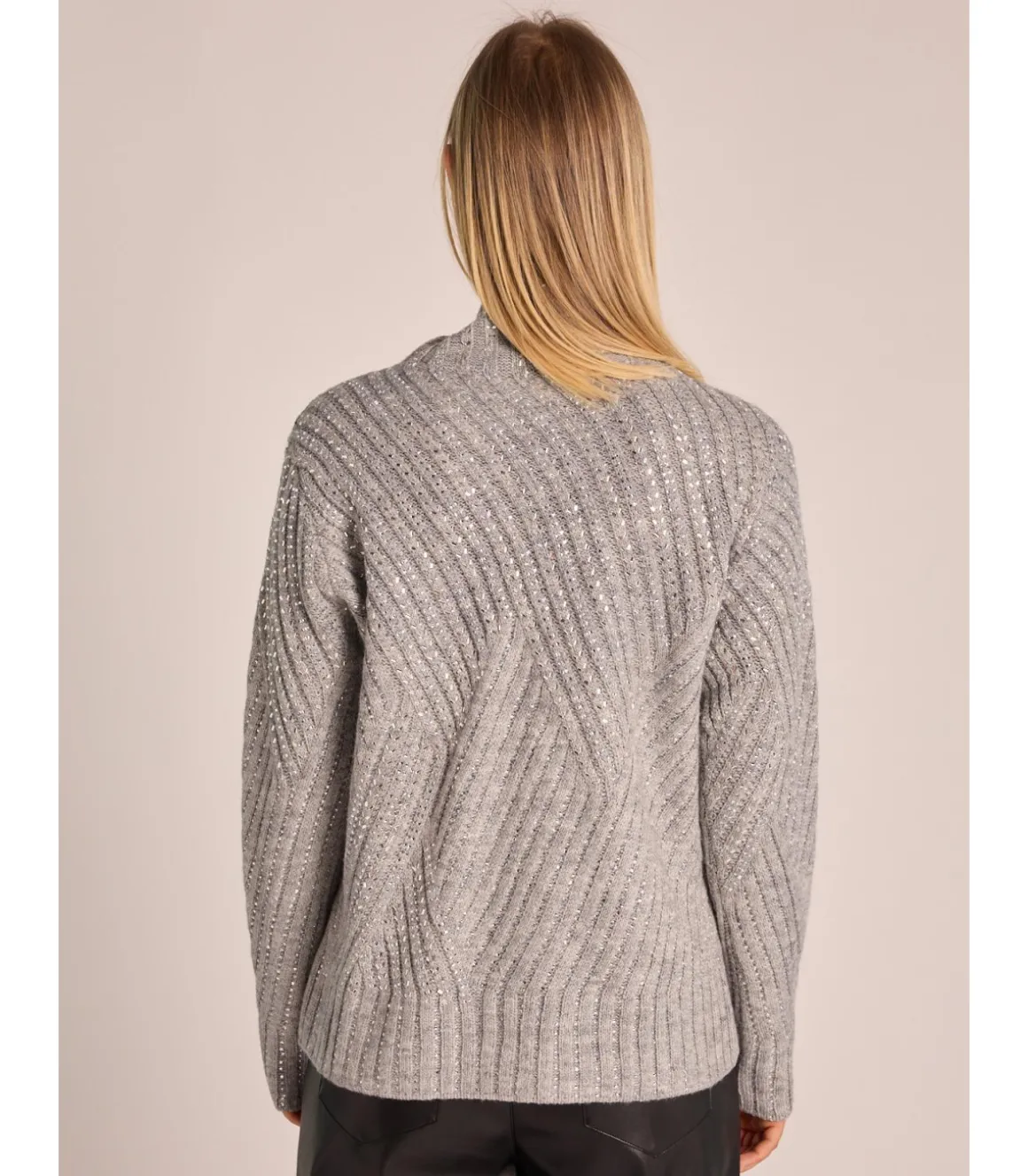Jersey de punto de mujer con detalles de pedrería. Con manga larga y sin cierre. Las medidas de la modelo vistiendo la talla S son: altura 1,68cm, pecho 87cm, cintura 63cm y cadera 88cm.