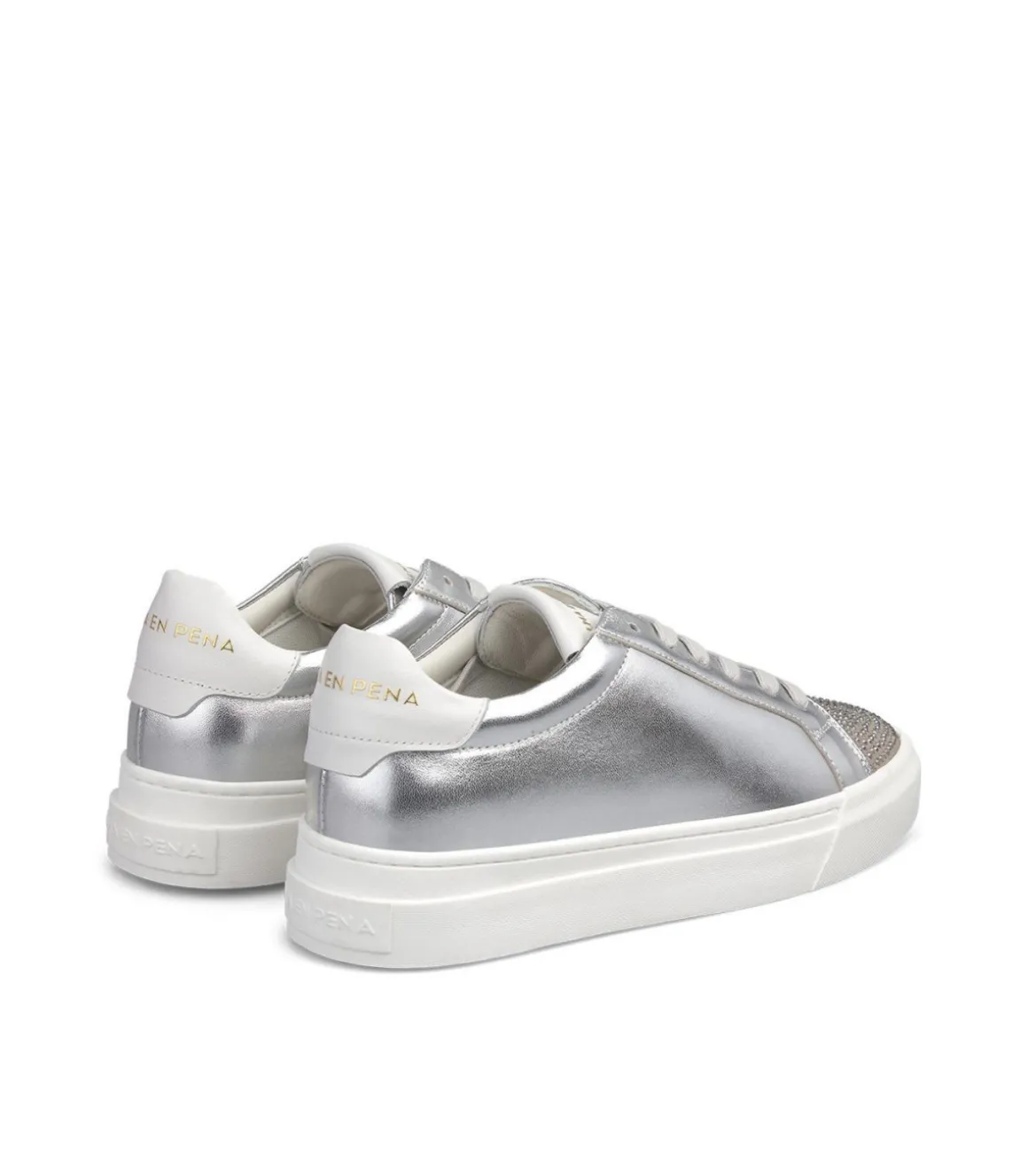 Sneaker de mujer realizada en piel con detalles de pedrería. Cierre con cordones y puntera redonda. Suela con plataform…
