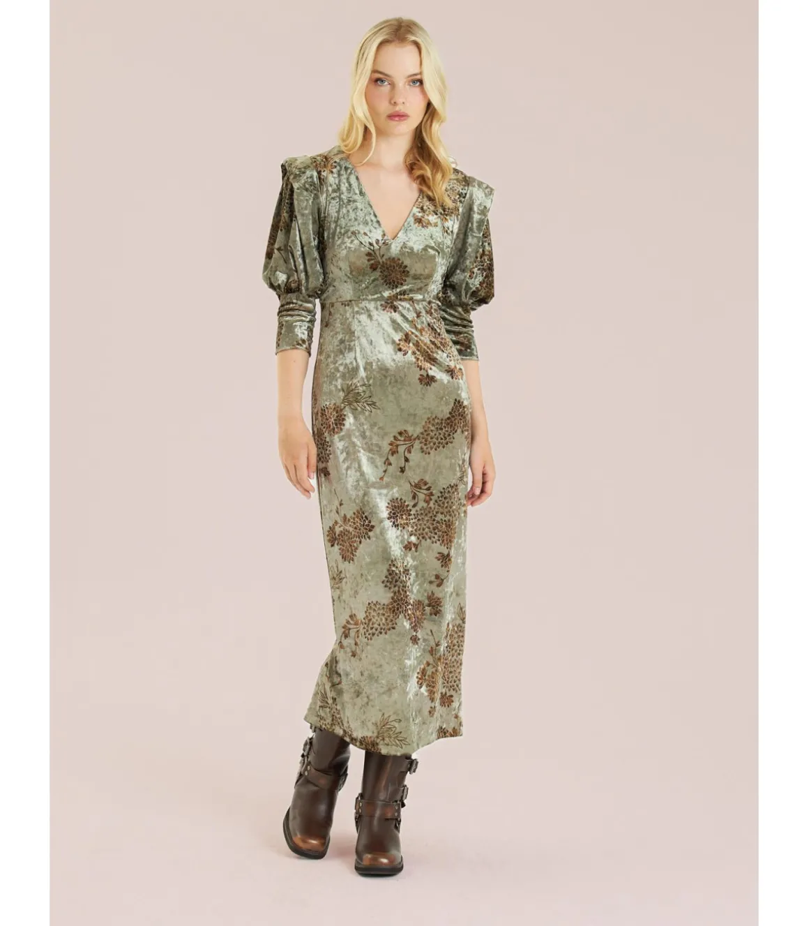 Alma en Pena Vestidos Largos|VESTIDO TERCIOPELO MANGA ABULLONADA