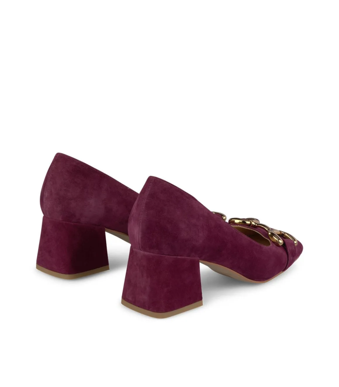 Zapato de tacón realizado en piel con adorno de estribo. Tacón bloque y puntera cuadrada. La altura del tacón es de 7,5cm.