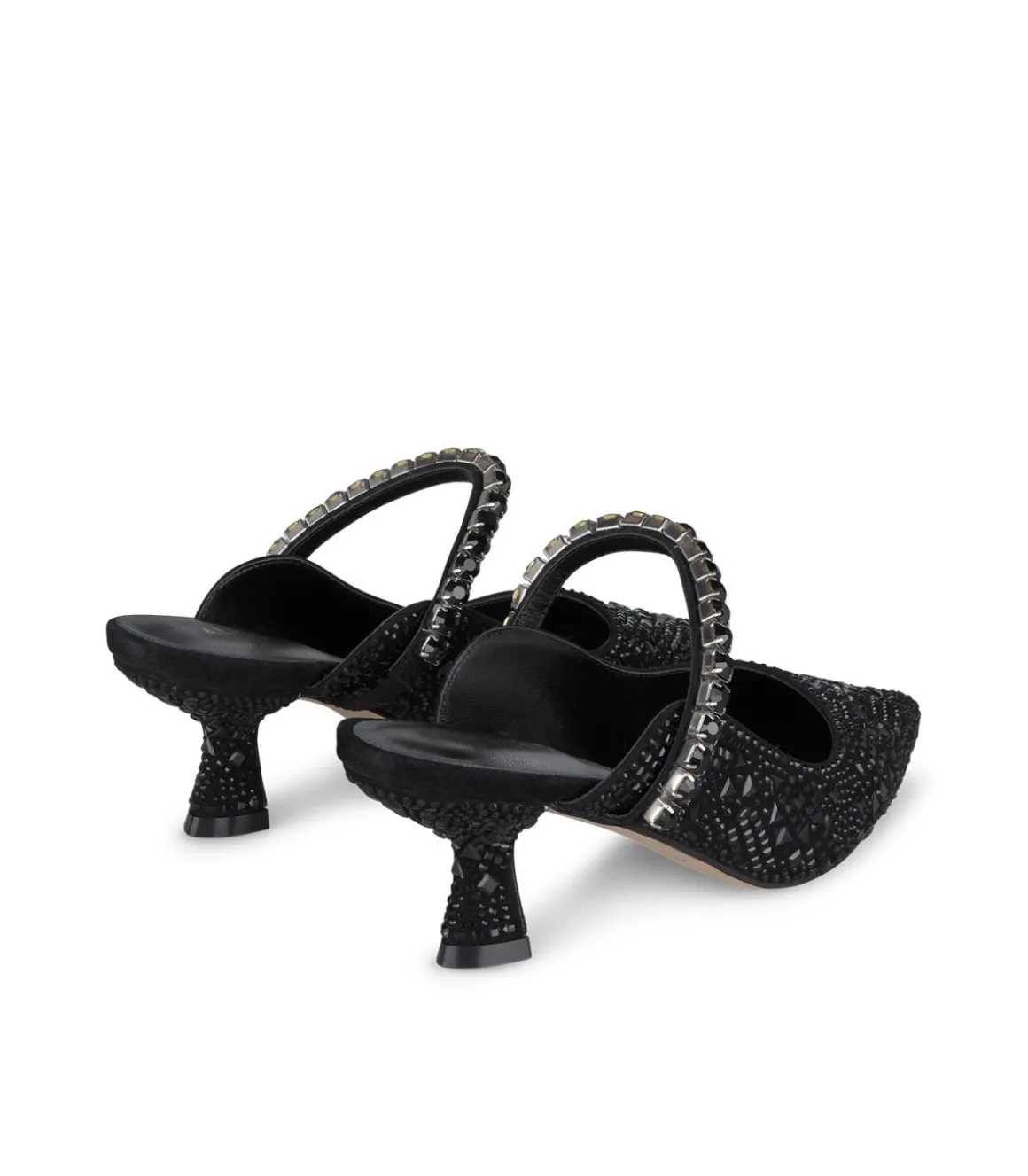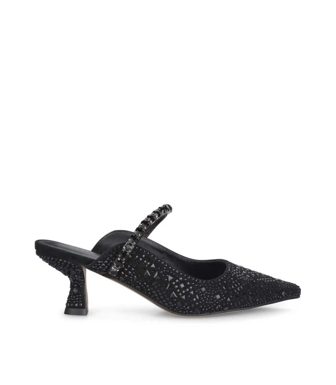Zapato de tacón chupete de mujer con puntera afilada y detalle de brillos. Cierre con hebilla. La altura del tacón es de 6cm.