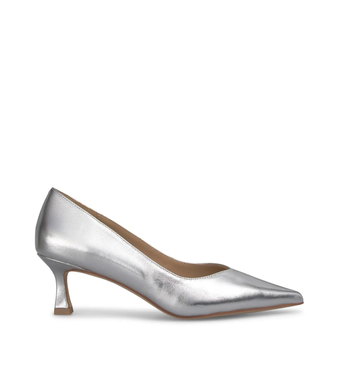 Zapato de tacón medio confeccionado en piel, con la puntera afilada y sin cierre. Tacón de aguja con altura de 7cm.