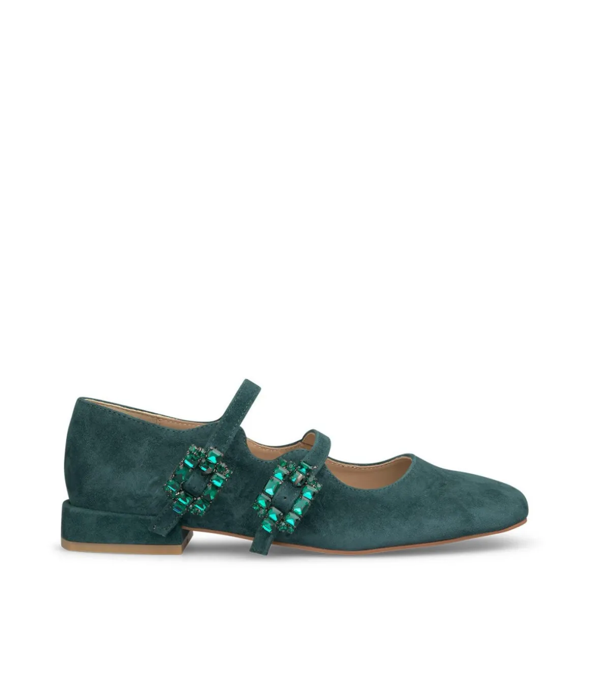 Bailarina plana de mujer con dos hebillas y puntera redondeada. Confeccionada en piel y la altura del tacón es de 2,2cm.