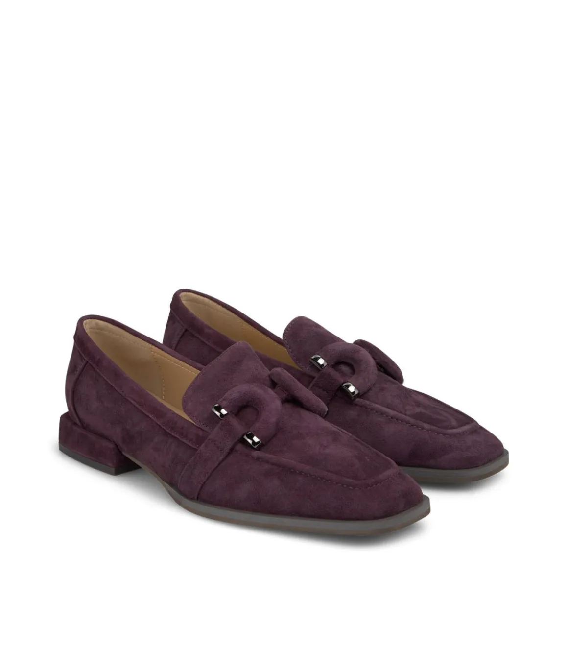 Mocasín de mujer con detalle metalizado. Con puntera cuadrada, confeccionado en piel y sin cierre. La altura del tacón es de 2,2cm.