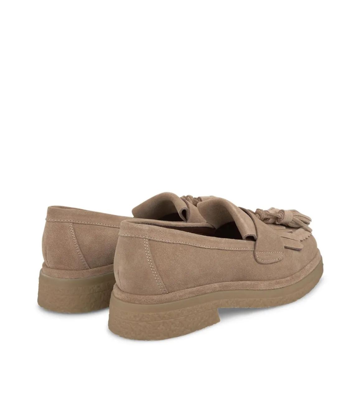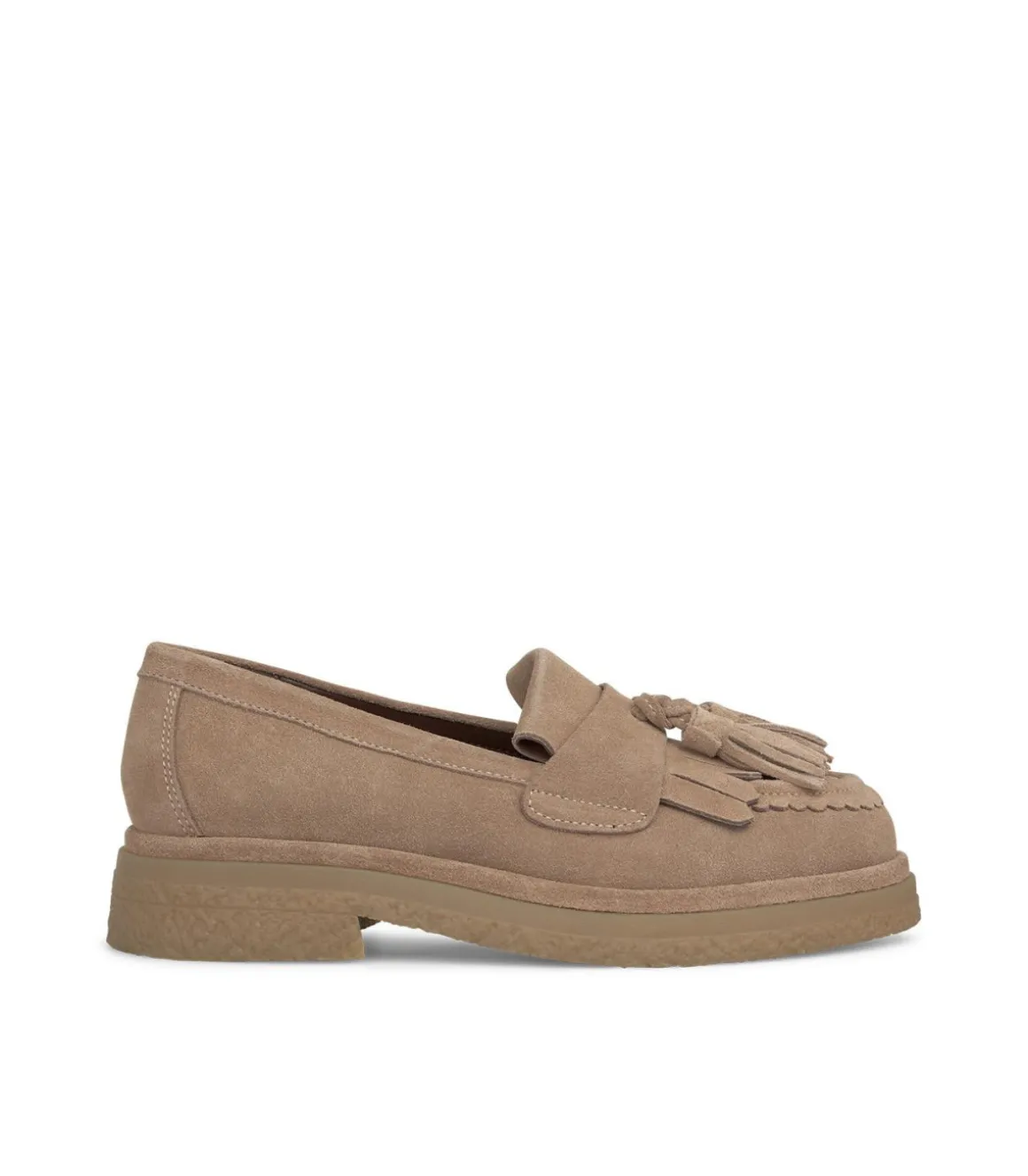 Mocasín de mujer plano con estribo borla. La puntera es redondeada y no tiene cierre. Confeccionado en piel. La altura del tacón es de 3cm.